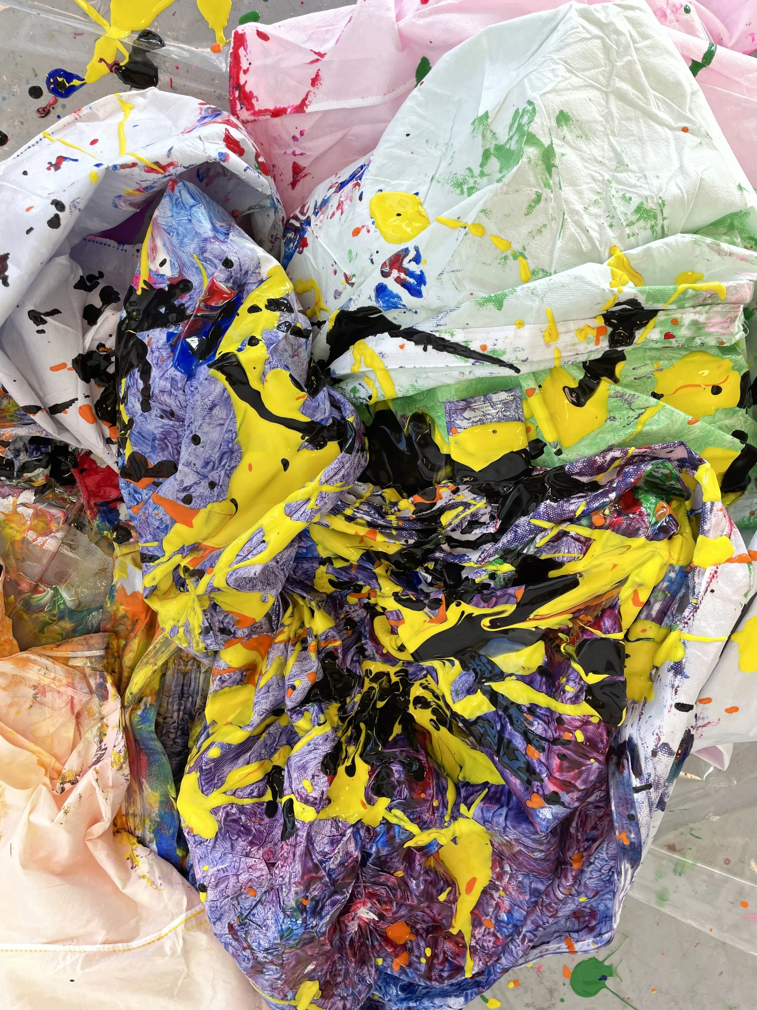 This project represents the phases of my life through five color-coded sections on a canvas, with each stage symbolizing a different period from childhood to the inevitable end. Through layered paint suits, meaningful music, and expressive dance, I visually and physically embody my past, present, and future journey.